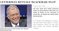 The news that David Letterman has confessed to affairs with female employees after a blackmail attempt has been covered by all the papers. For example the Guardian, Times, Sun, Express and Star: